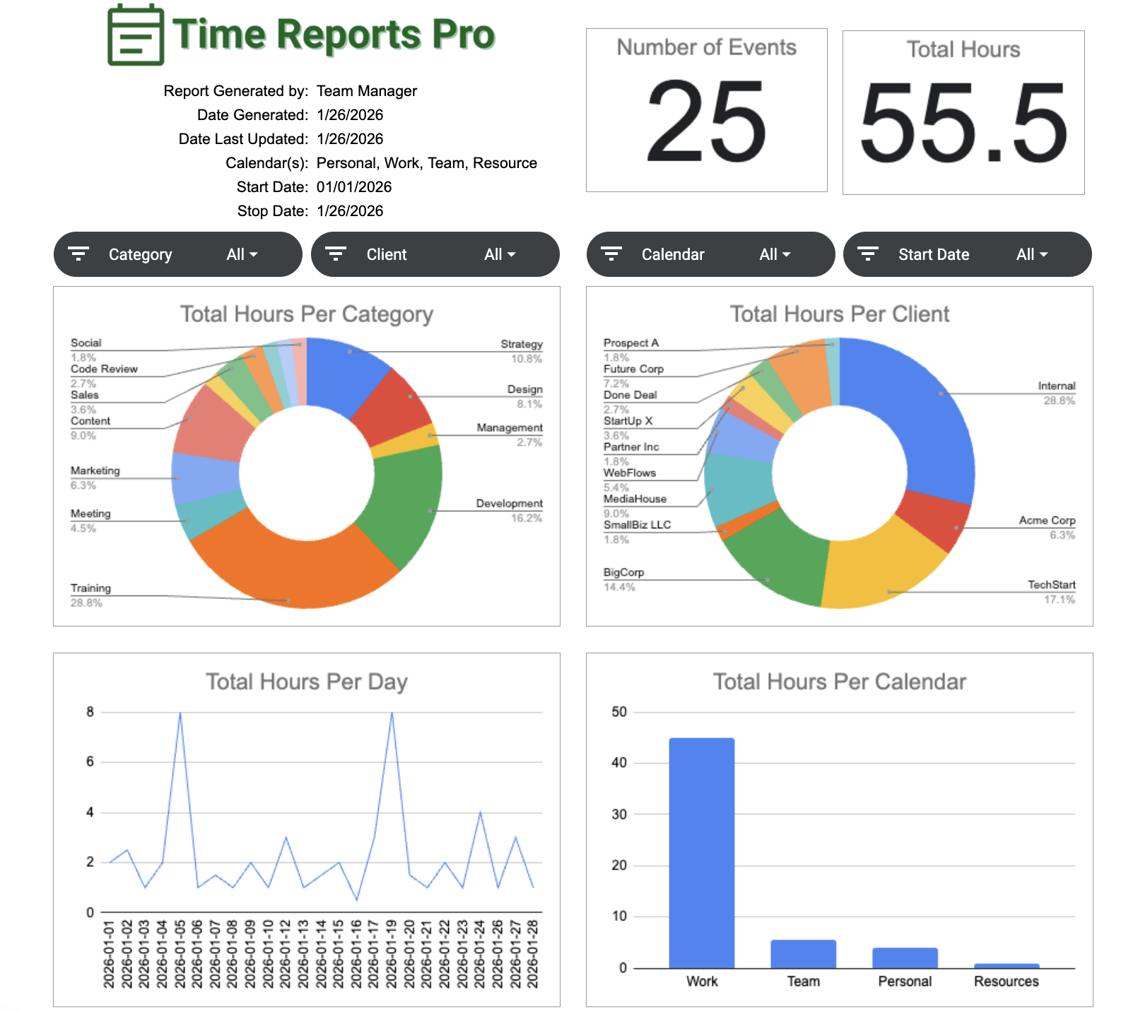 Visualize Your Time with Your Google Calendar™ Analytics Dashboard in Time Reports Pro